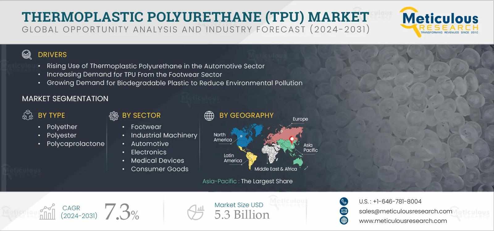 According to the comprehensive market research report by Meticulous Research®, the global TPU market is projected to witness substantial growth through 2032, driven by increasing demand for sustainable materials, advancements in polymer engineering, and the rising adoption of TPU in high-growth industries.